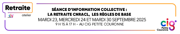 Dans le cadre d’une convention de partenariat avec la CNRACL et de la mission d’information et d’assistance auprès des collectivités et établissements publics affiliés, le service Retraite du CIG Petite Couronne vous propose une séance d’information sur les procédures relatives à la gestion des dossiers de retraite des fonctionnaires.