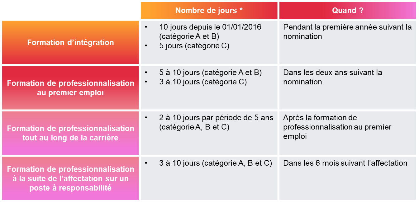 *Le nombre de jours de formation est fixé par le statut particulier de chaque cadre d’emplois.